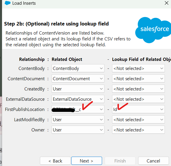 (customField__c 는 Contentversion object에 있으면 넣고 없으면 안넣어줘도 된다)